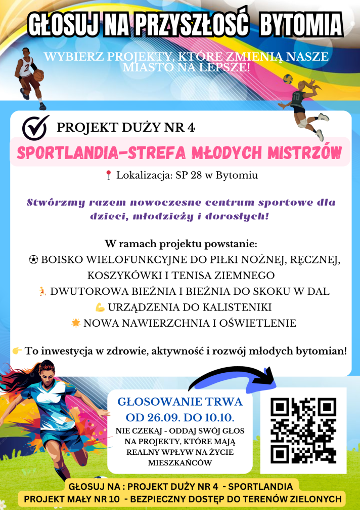 | Promocja projektu nr 4 | Aktywna promocja i mobilizacja społeczności szkolnej do głosowania na projekt budżetu obywatelskiego Bytomia Projekt nr 4 SPORTLANDIA – STREFA MŁODYCH MISTRZÓW |